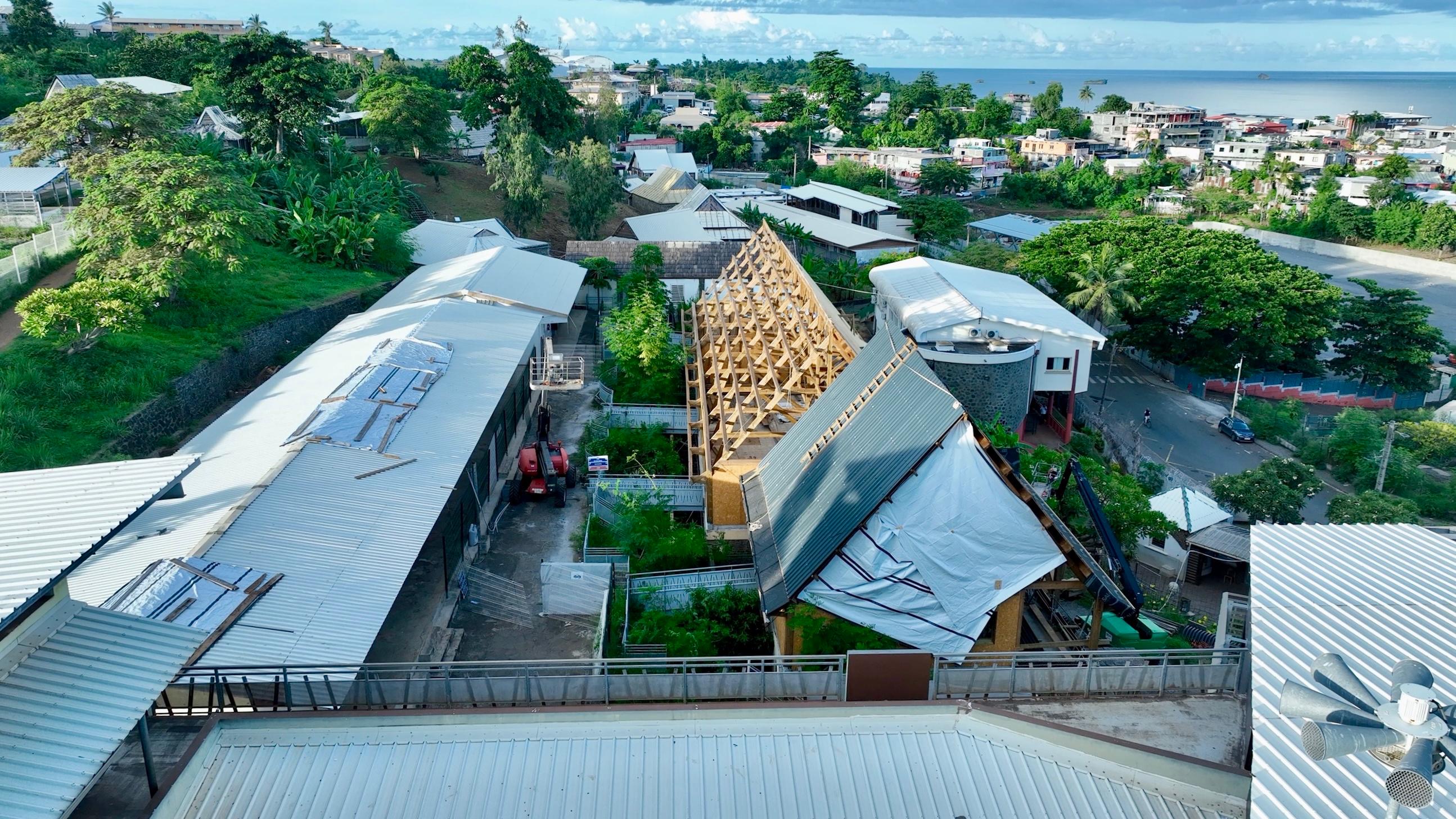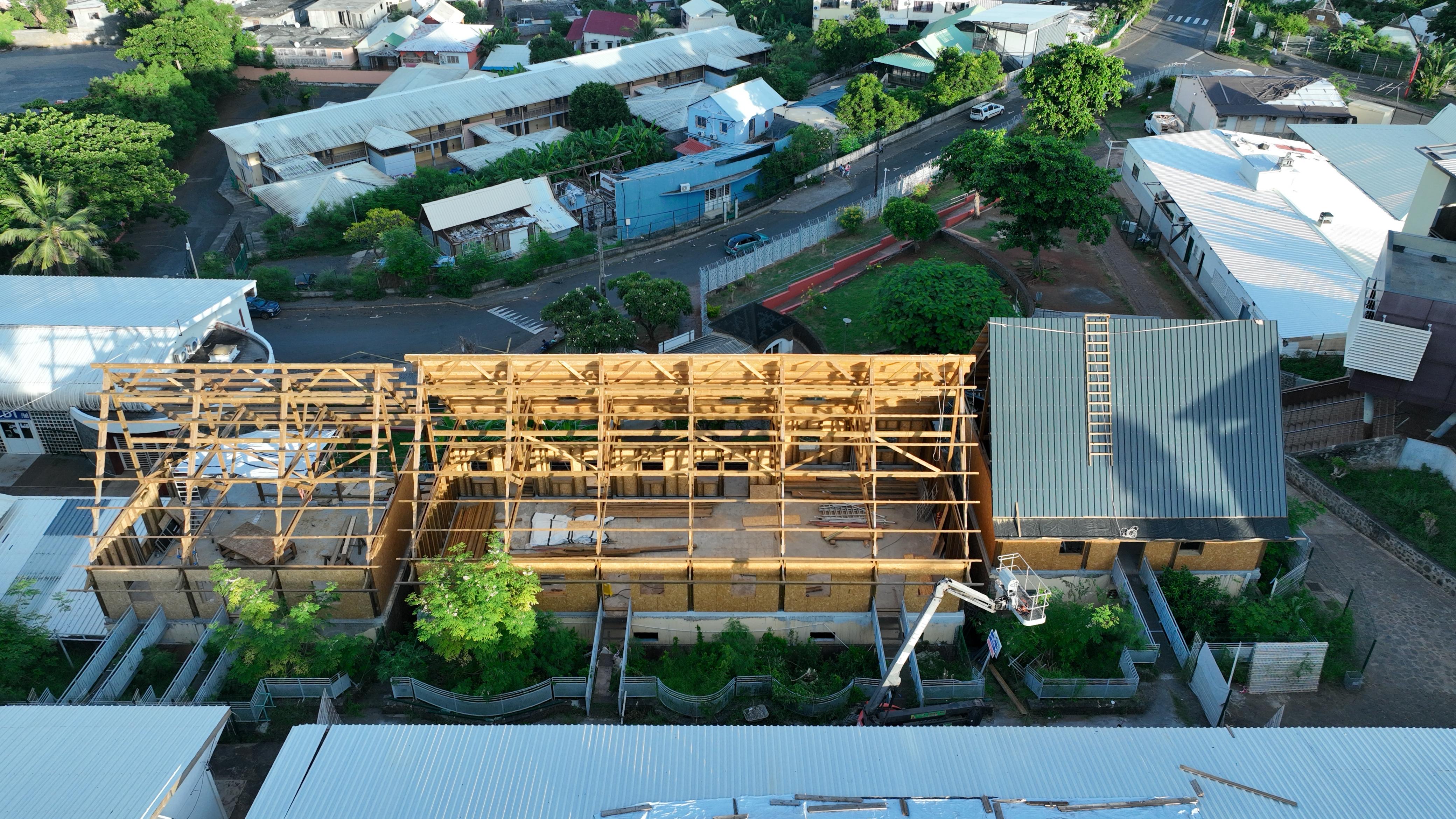 Les travaux de reconstruction du bâtiment central, engagés en début d’année scolaire 2025-2026, progressent conformément aux prévisions. La charpente est terminée et la toiture est presque entièrement posée.