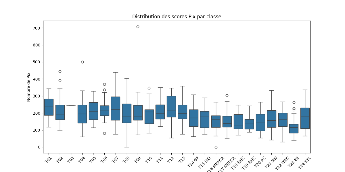 | Classe | Effectif | Moyenne Pix | Médiane Pix | Meilleur score |