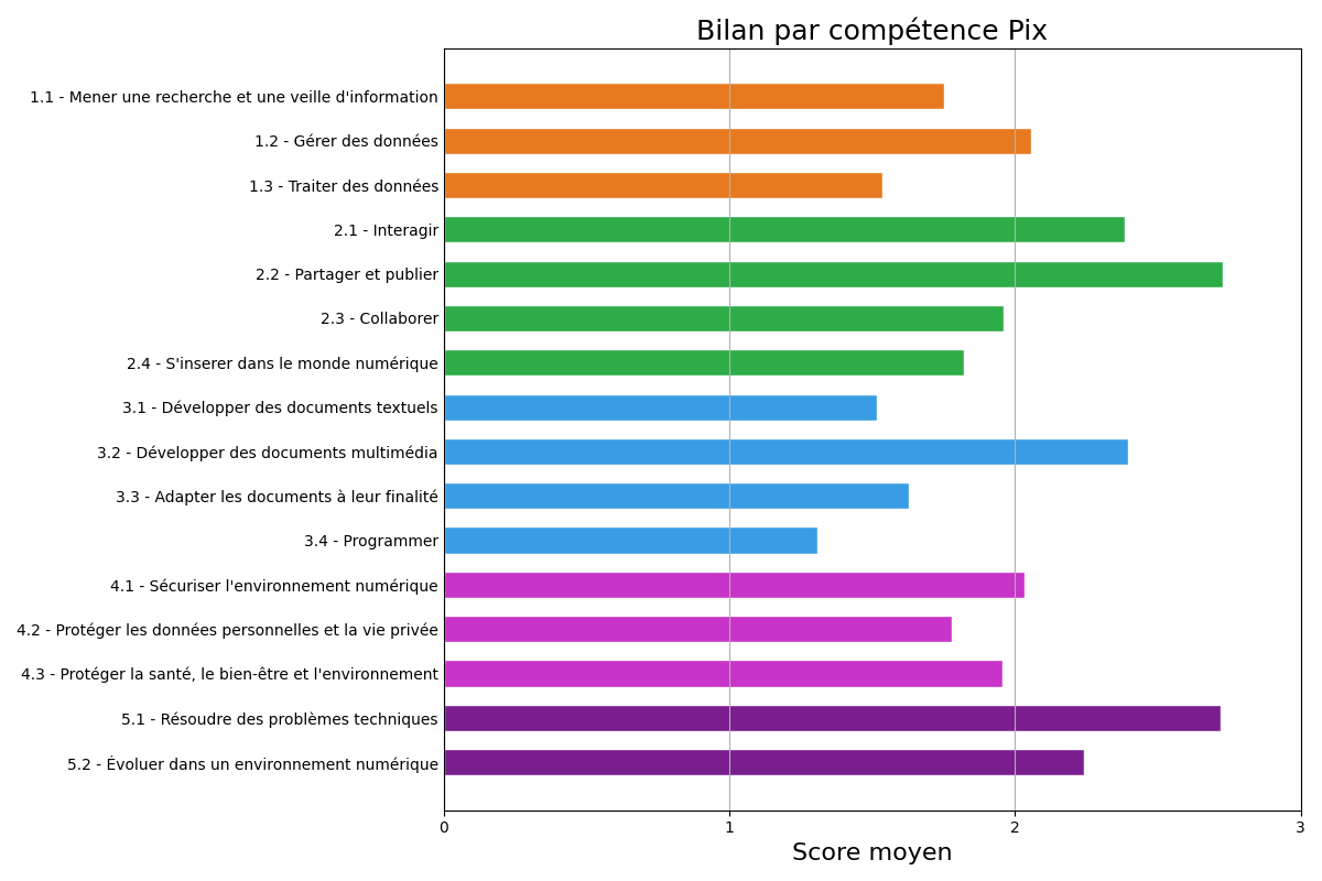 Le niveau médian correspond à "Novice 2". D’après la plateforme Pix, cela signifie que les élèves du lycée ont des pratiques numériques simples, avec de l’aide quand la situation se complique. Dans leur environnement numérique habituel, ils sont capables de rechercher des informations sur le Web, télécharger un fichier et le retrouver, consulter et envoyer des messages électroniques, connecter leurs appareils à internet (ordinateurs, tablette, téléphone). Ils peuvent saisir un texte avec une mise en forme simple et le sauvegarder. Ils savent que certaines informations publiées en ligne sont fausses et qu’il est important de protéger leurs comptes avec des mots de passe sûrs.